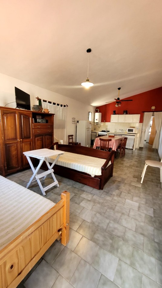 Se encuentra subdividida de la siguiente manera: Amplio living-comedor-cocina, baño completo y dormitorio. Cama matrimonial en dormitorio, y en el living dos camas marineras más. Toda equipada.